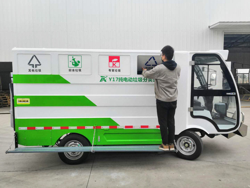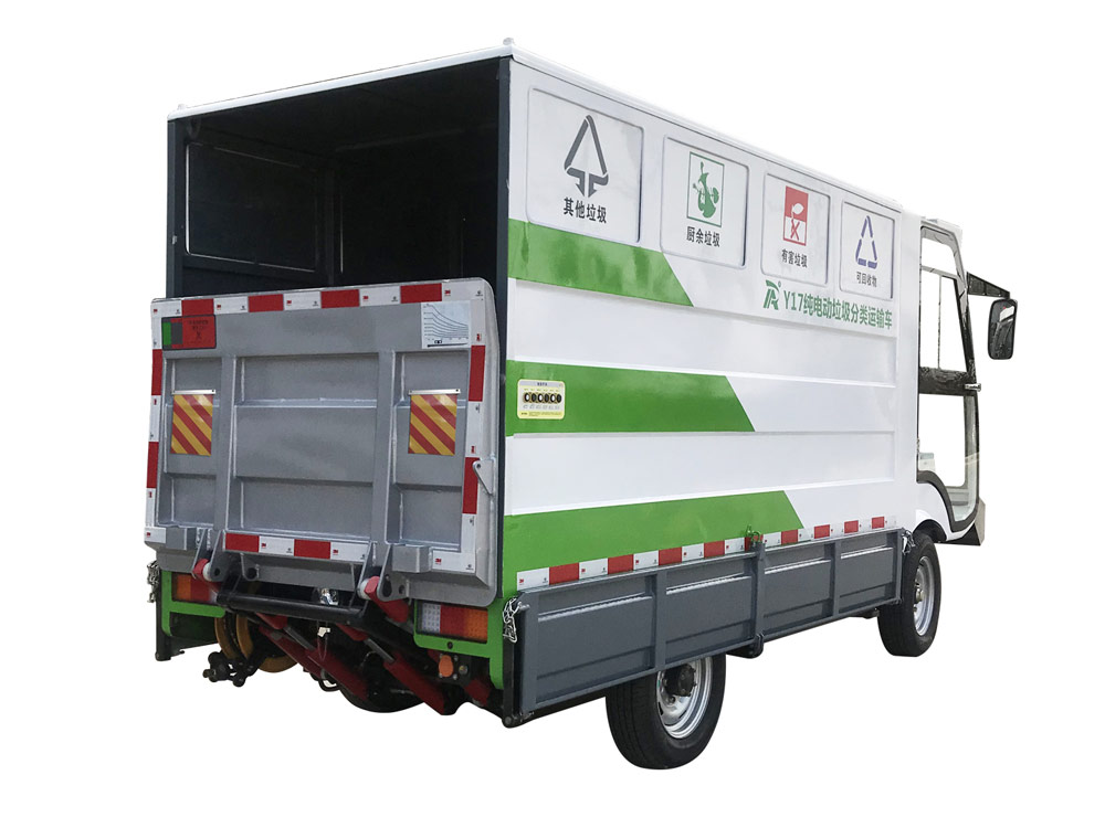 Ruibao y17 pure electric garbage collection and transportation vehicle is mainly used in streets, business districts, property districts, towns, scenic spots, schools and other places for regular and fixed-point classification, collection and transportation of four types of garbage. It is pure electric operation, low cost and zero emission. European configuration, excellent performance.