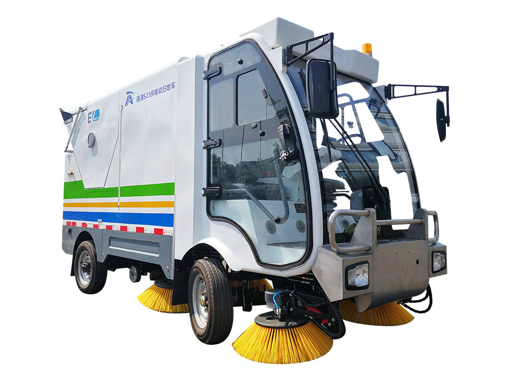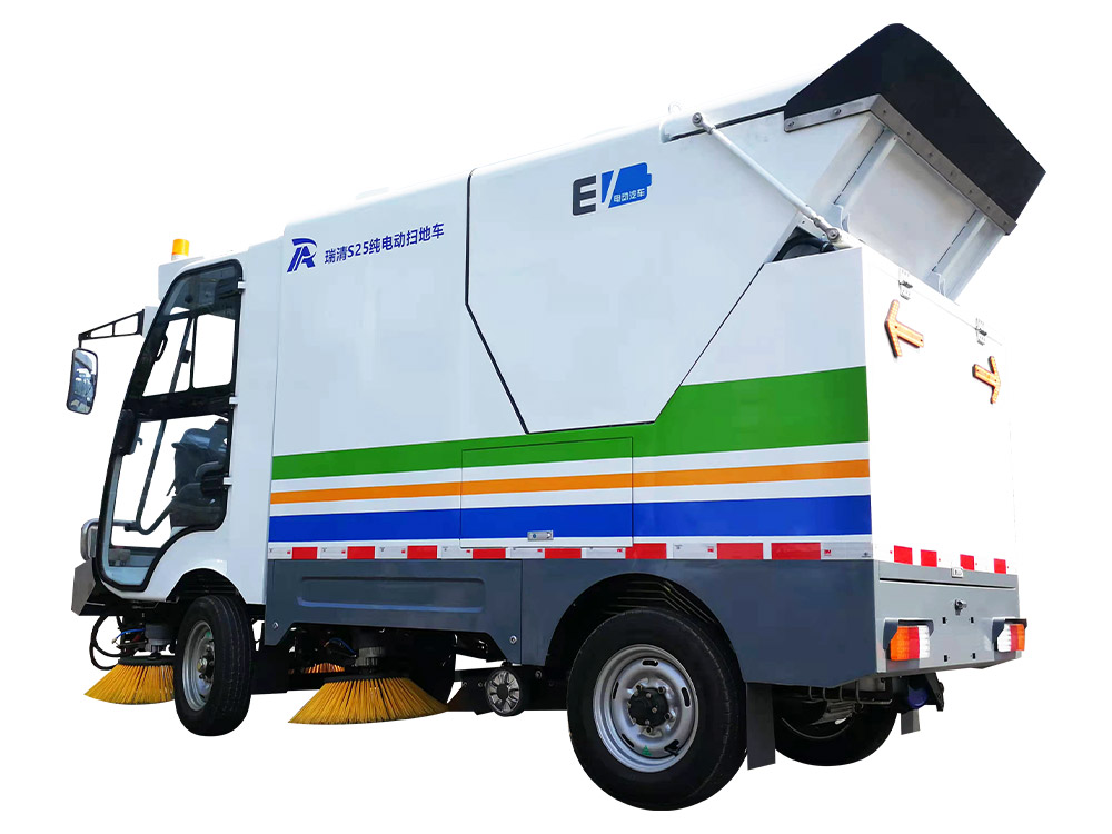 Ruiqing S25 pure electric pure suction sweeper is mainly used for general sweeping of main roads and auxiliary roads. It adopts pure suction mode, which can quickly clean fallen leaves, stones, sand dust, white garbage, etc. the garbage can has large capacity and high-level dump