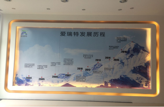 同時,展廳內利用照片、圖表、文字等展示了愛瑞特發展歷程、企業文化、企業榮譽以及主營產品等。展廳還通過造型、燈光等突出了重點展示內容。使客戶可以簡潔明了地了解和咨詢愛瑞特相關資訊。