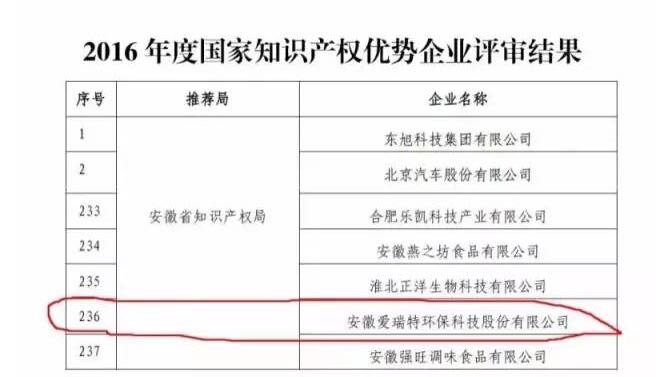 關(guān)于2016年度國家知識產(chǎn)權(quán)示范企業(yè)和國家知識產(chǎn)權(quán)優(yōu)勢企業(yè)評審和復(fù)核結(jié)果公示的通知