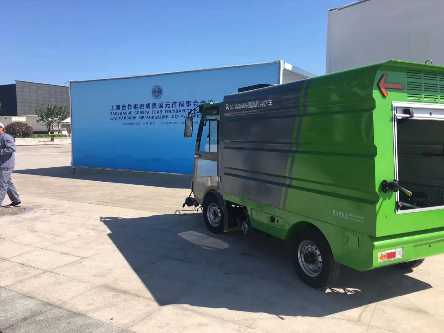 從G20科技創新部長會議、“一帶一路”國際合作高峰論壇到夏季達沃斯年會、金磚國家領導人第九次會晤,新能源都是會議的重點。愛瑞特有幸與上合會合作,這不僅是國家、社會對新能源產品質量和品牌形象的高度認可,更是愛瑞特新能源積極履行企業公民社會責任的體現。愛瑞特董事長艾和金強調:“企業不僅是社會財富的創造者,也是社會價值觀的承載者。此次承擔主要清洗任務的瑞保Q10L,是愛瑞特公司最新研發的新型高壓清洗車,該車主要用于路面重掃、圓林綠化和噴灑農藥殺蟲、同時可沖洗地面污垢、垃圾桶、墻面廣告標貼等。水箱具有加藥口,通過高壓水槍進行霧化噴灑,20分鐘可以完成人工一天工作,有了愛瑞特Q10L的協助,今年的上合會將會更加“清新,綠色”。