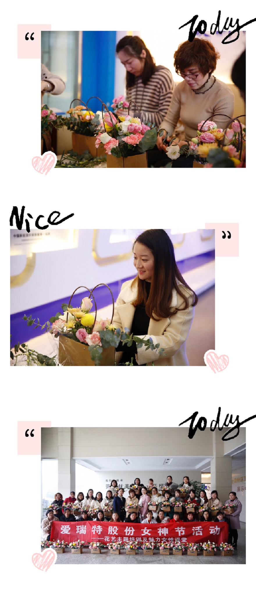 此次活動不僅豐富了愛瑞特員工的業余生活,通過插花來裝飾自己的生活環境,點綴生活中的美;同時也增強了企業凝聚力。
